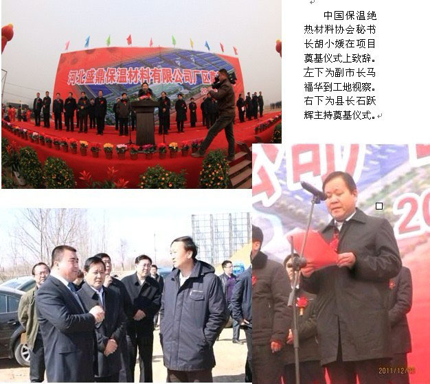河北盛鼎保溫材料有限公司年產(chǎn)30萬(wàn)噸巖棉制品項(xiàng)目,自開(kāi)始運(yùn)籌,就得到了市、縣各級(jí)領(lǐng)導(dǎo),各有關(guān)部門(mén)的大力關(guān)懷和支持。市委常委崔士霞、市人大副主任吳平親臨項(xiàng)目奠基儀式。市委書(shū)記劉可為,市長(zhǎng)楊慧,市紀(jì)委書(shū)記魏存計(jì),市委常委、秘書(shū)長(zhǎng)王金剛,市人大副主任、黨組書(shū)記楊勝忠,副市長(zhǎng)馬福華等都曾親臨公司和公司項(xiàng)目工地視察。縣委書(shū)記姚幸福,縣長(zhǎng)石躍輝及縣“四大班子”其他主要領(lǐng)導(dǎo),也曾多次到公司和項(xiàng)目工地進(jìn)行指導(dǎo)并召集有關(guān)部門(mén)現(xiàn)場(chǎng)辦公。